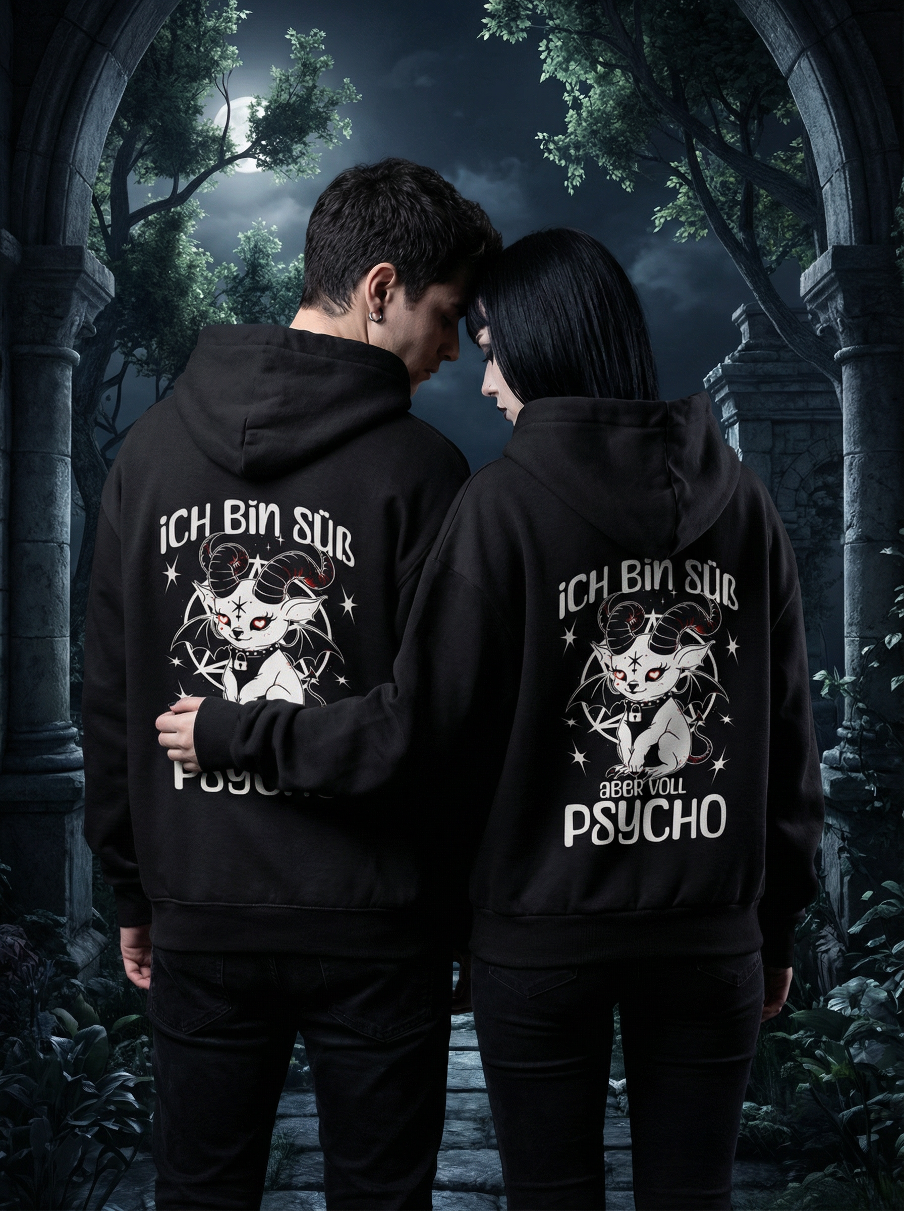 Ich bin süß aber voll Psycho Baphomet Partnerlook -Hoody Set für Pärchen oder Besties