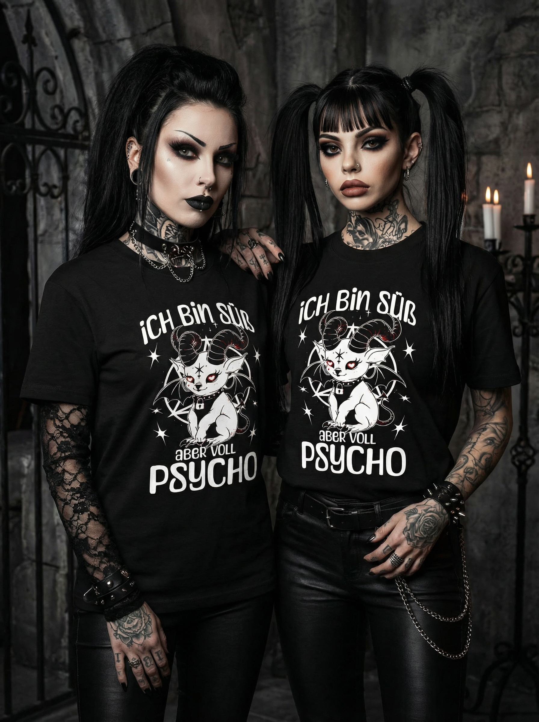 Ich bin süß aber voll Psycho Baphomet Partnerlook - T-Shirt Set für Pärchen oder Besties